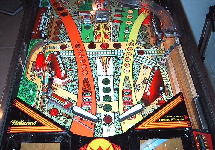 So what does $85 buy you..... I have bought more than my share of "duds" (my first Firepower II comes to mind, 8 hour drive for a piece of crap...), so the pinball gods owed me this one... The game sat in my garage from December 1st of 2001 until late February 2002 (only 3 months, not bad..) I had a friend over and convinced him to help me lug it downstairs in one piece. I normally disassemble the games to take them down myself, but having the manpower to not take it apart saved me a couple of hours of work.