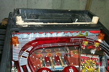 Here is a close-up shot of the damage to the top of the machine. The front of the backbox's base was completely ripped off of the machine. |