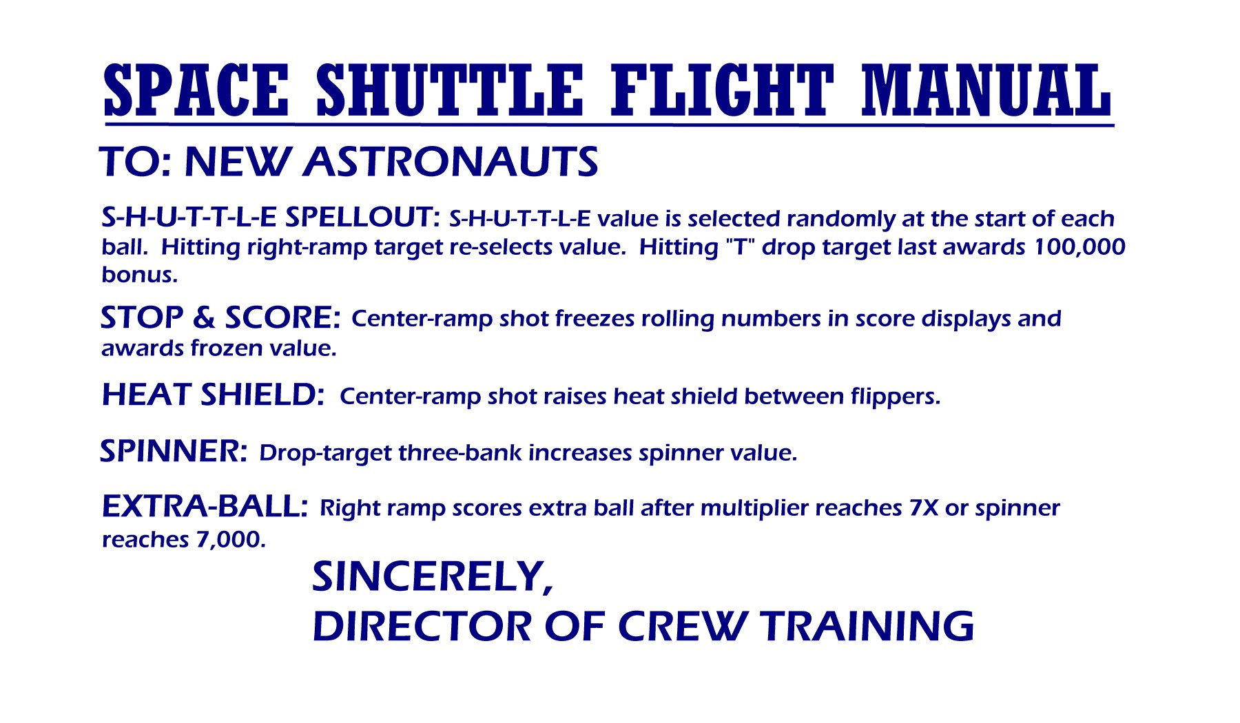 The Pricing Card is a custom card that I made for my machine. I have the machine set on free play with an extra ball awarded at 600,000 points. Feel free to alter the image to suit your needs. The font on the pricing card is Futura XBlk BT. Image Size is 126k.